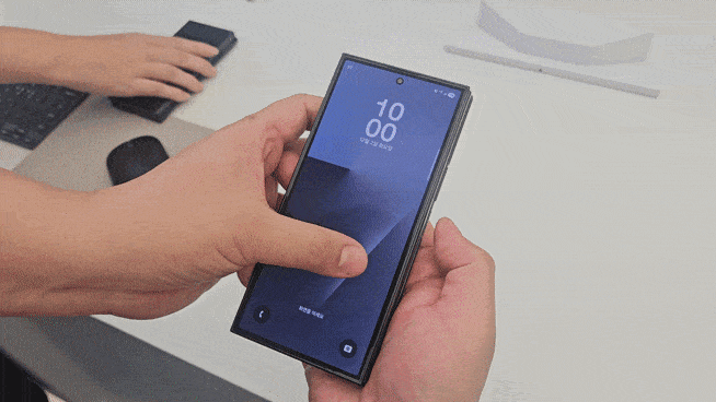 핵심은 폰을 완전히 펼치면 나타나는 10인치 대화면이다. 책처럼 여닫는 폴드7(8인치)보다 태블릿 PC에 더 가까운 형태다. 접었을 때 디스플레이는 6.5인치로, 일반적인 바 타입 스마트폰처럼 쓸 수 있다. 제품은 화면을 안으로 두 번 접는 인폴딩 구조를 채택했다. 펼친 화면을 마주하고 왼쪽부터 접어야 한다. 오른쪽을 먼저 접으니 화면에 “다른 쪽 화면부터 접으세요”라는 문구가 뜨고 진동이 울렸다.